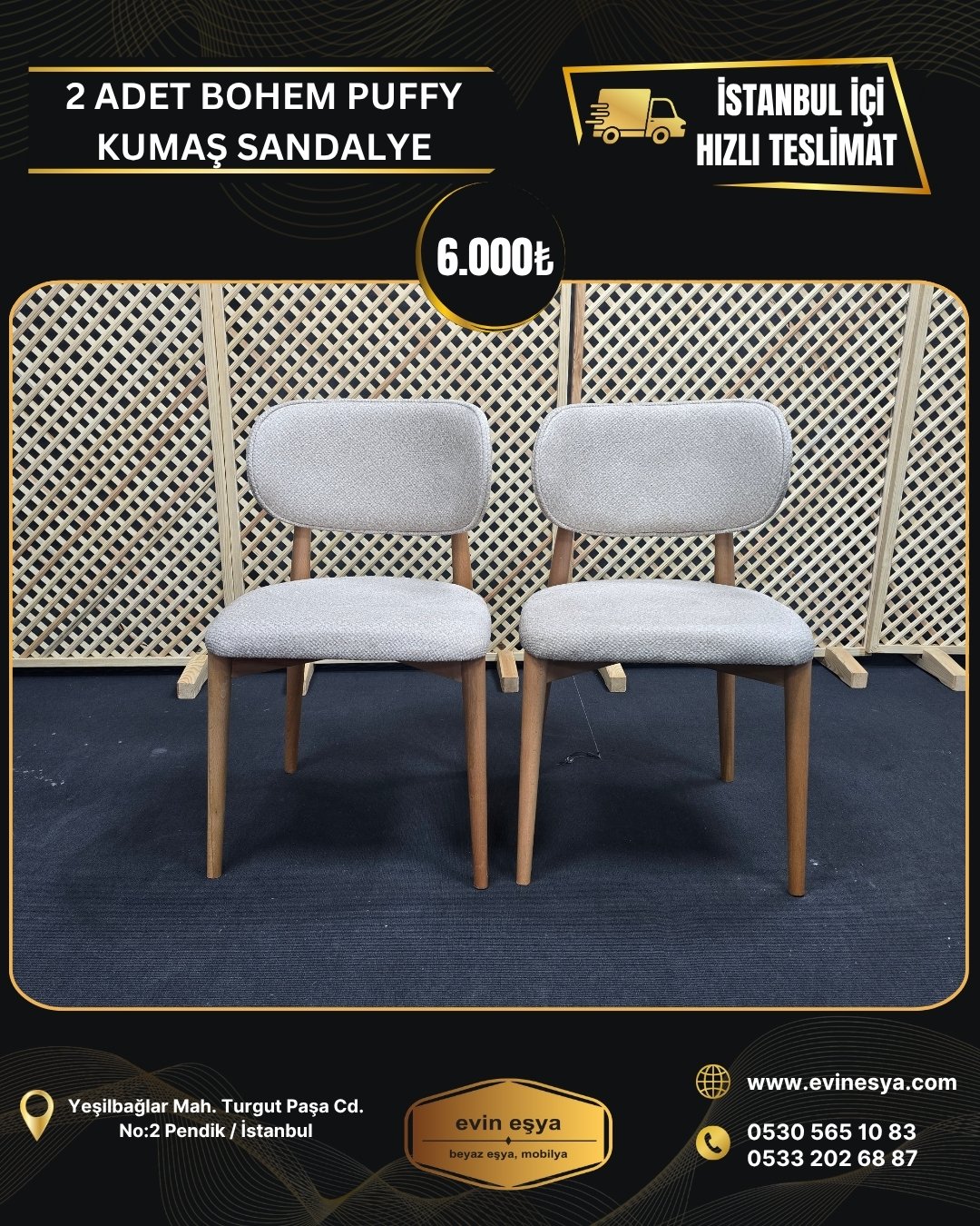 2 ADET BOHEM PUFFY KUMAŞ AHŞAP SANDALYE 6000 TL