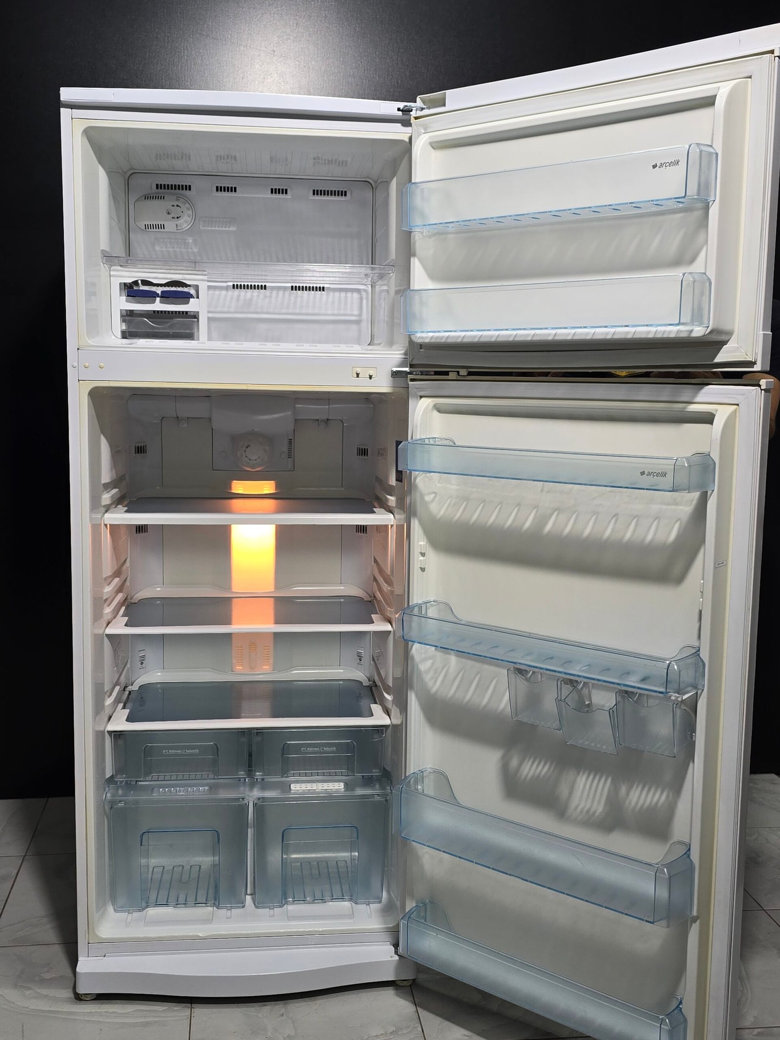 ARÇELİK A+ 470 LT BOMBELİ ŞIK TASARIM CAM RAFLI LED AYDINLATMA ÖZELLİK HİJYEN SIFIR DERECE BÖLMELİ NOFROST BUZDOLABI 13000 TL (70-185) ( DEPO 60)