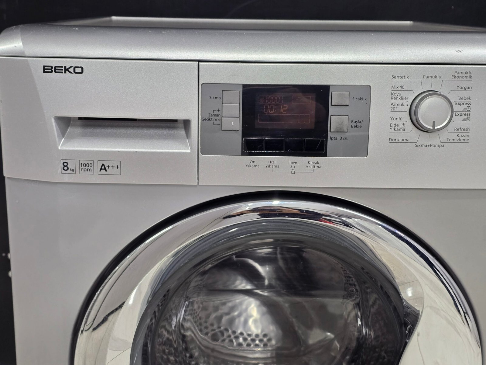 BEKO A+++ GRİ 8 KG 1000 DEVİR, PROGRAMLAMA EKRANLI 15 DK KISA PROG 9000 TL