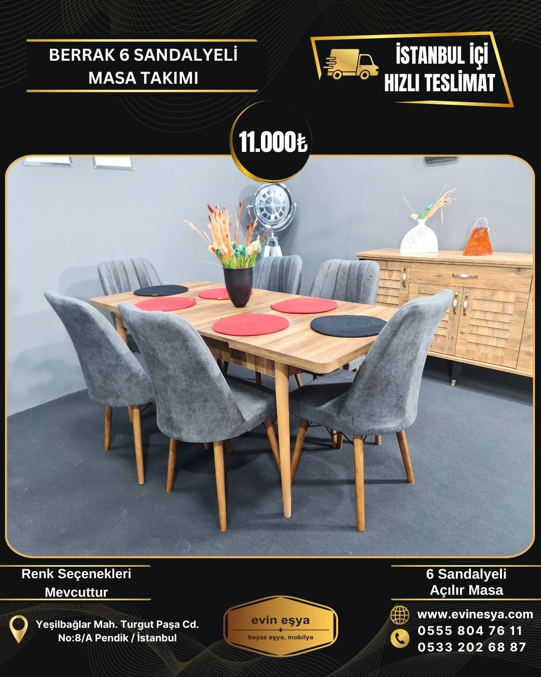 “BERRAK 6 KİŞİLİK KAHVERENGİ AÇILIR MASA TAKIMI” için yorum yapan ilk kişi siz olun