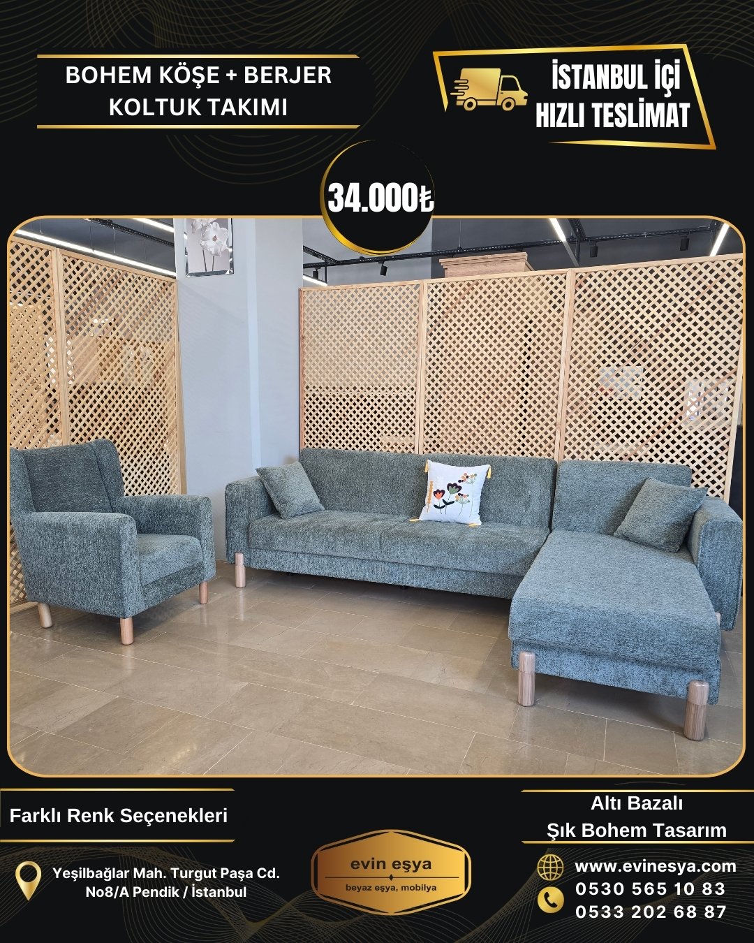 BOHEM KÖŞE KOLTUK+BERJER 34000 TL
