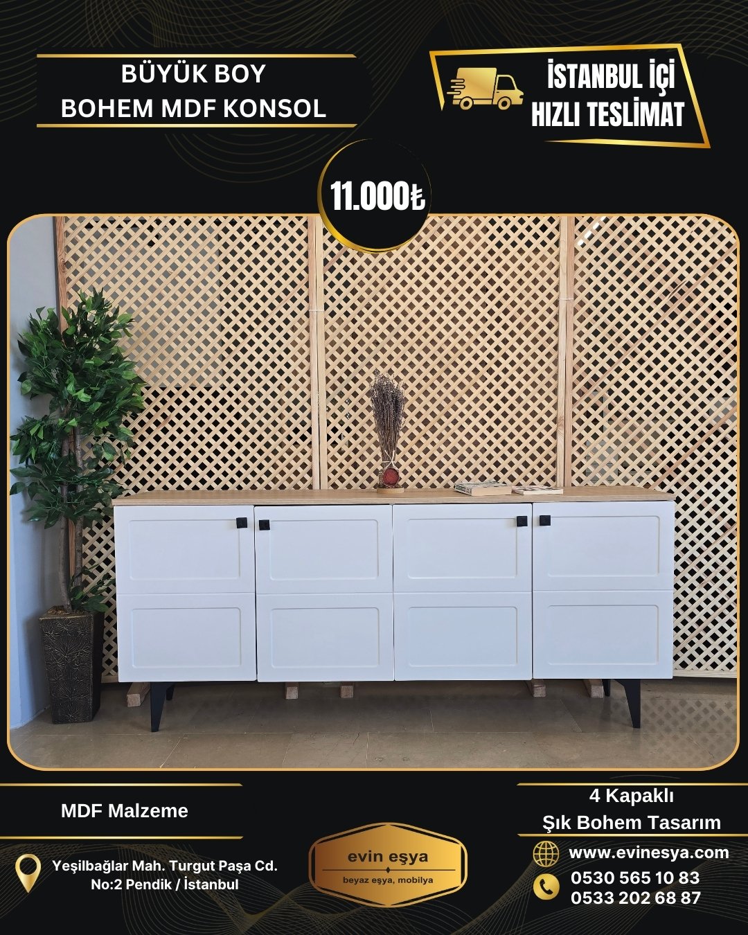 BÜYÜK BOY MDF BOHEM KONSOL 11000 TL
