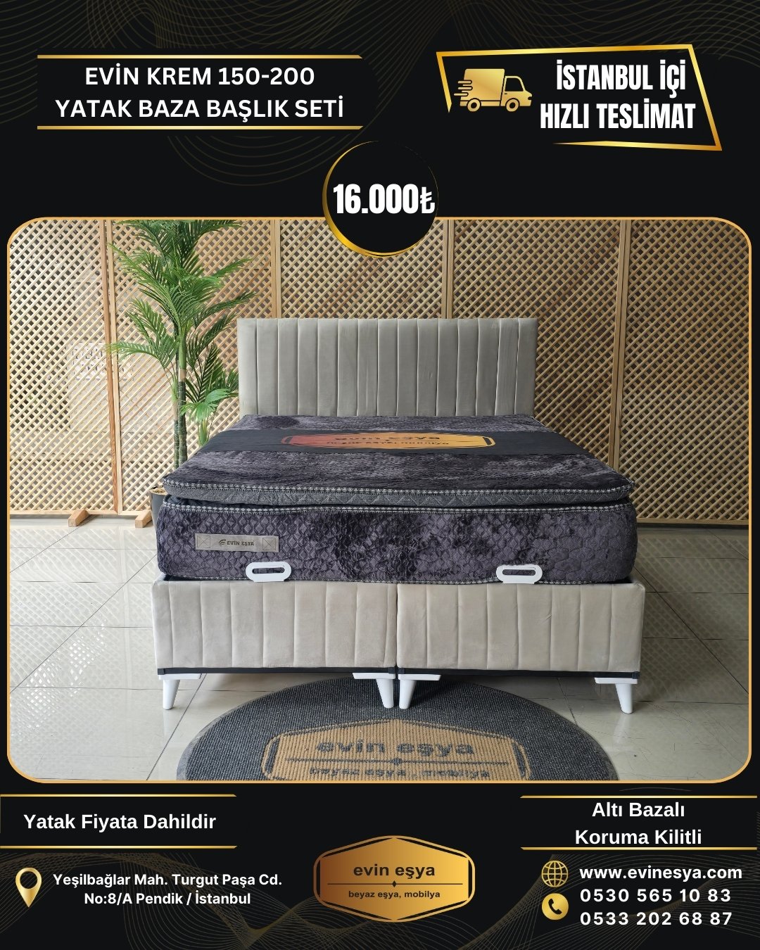 EVİN KREM 150-200 YATAK BAZA BAŞLIK SETİ 16000 TL