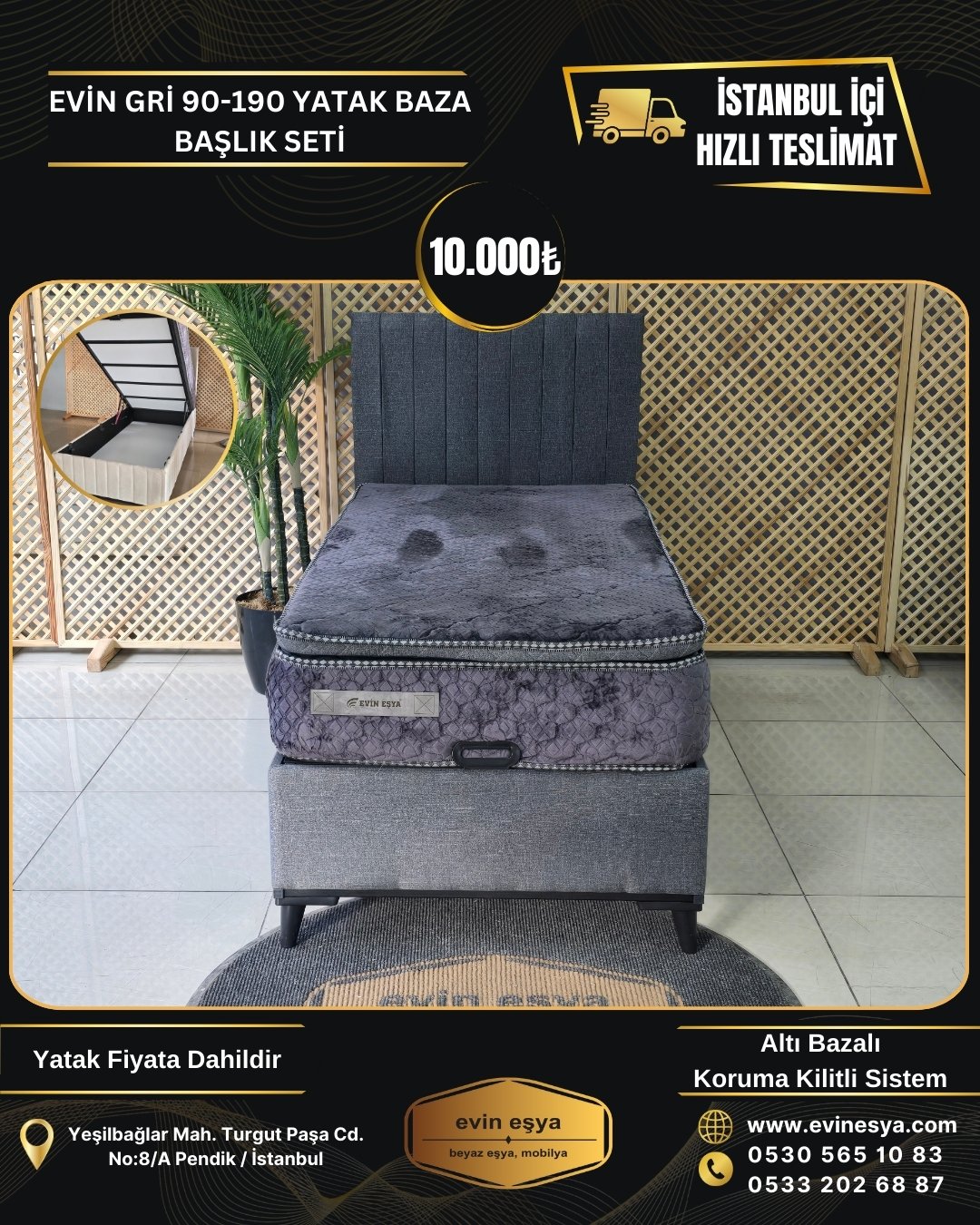 EVİN GRİ 90-190 YATAK BAZA BAŞLIK SETİ 10000 TL