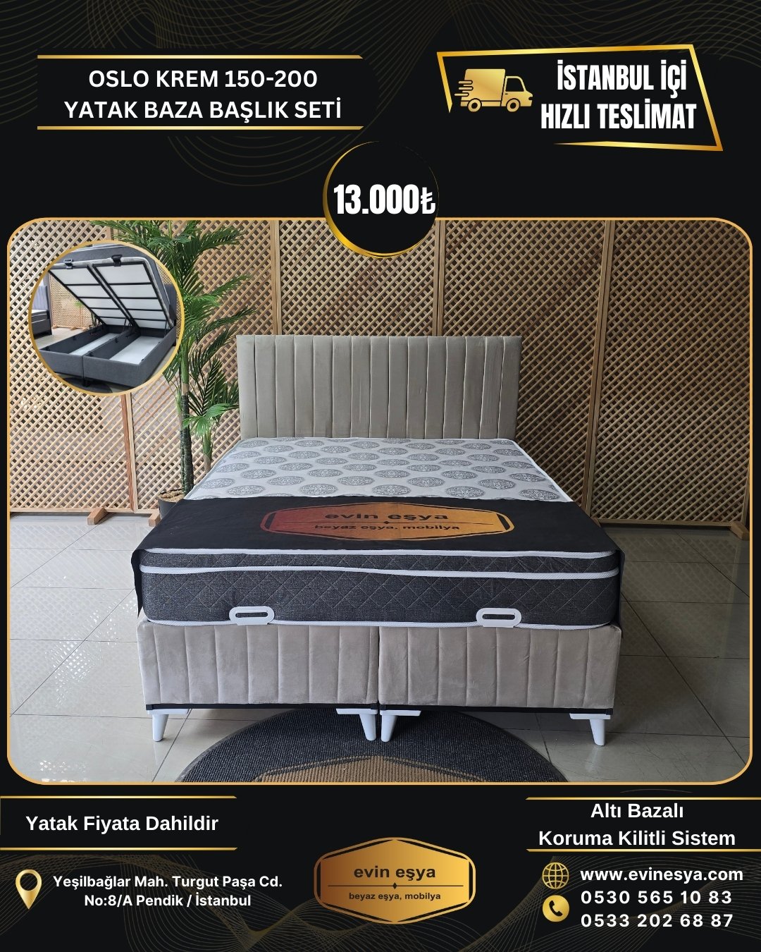 OSLO KREM 150-200 YATAK BAZA BAŞLIK SETİ 13000 TL