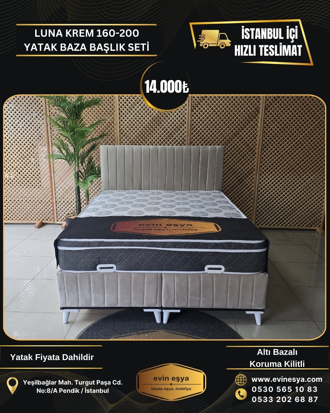 LUNA KREM 160-200 YATAK BAZA BAŞLIK SETİ 14000 TL
