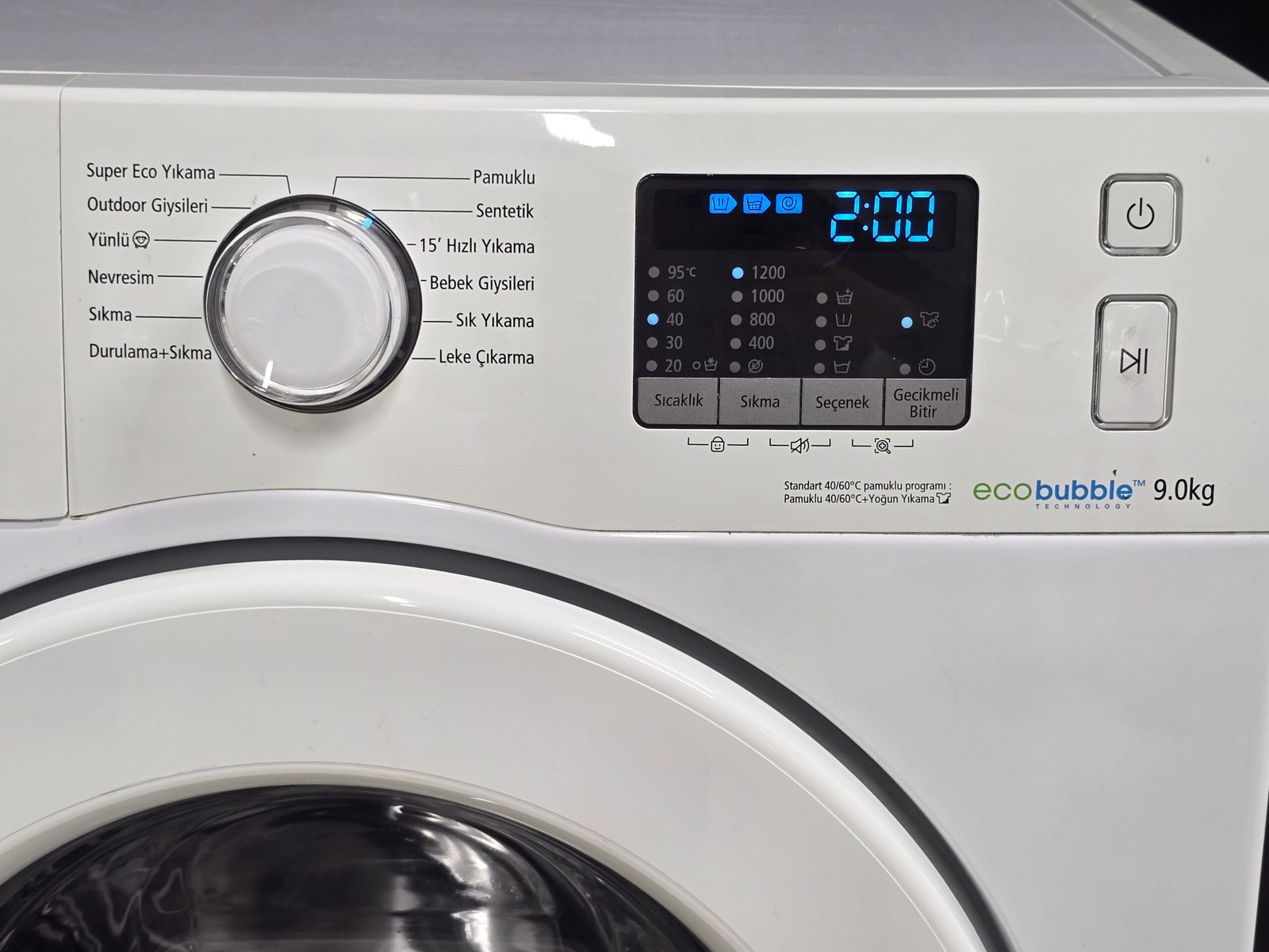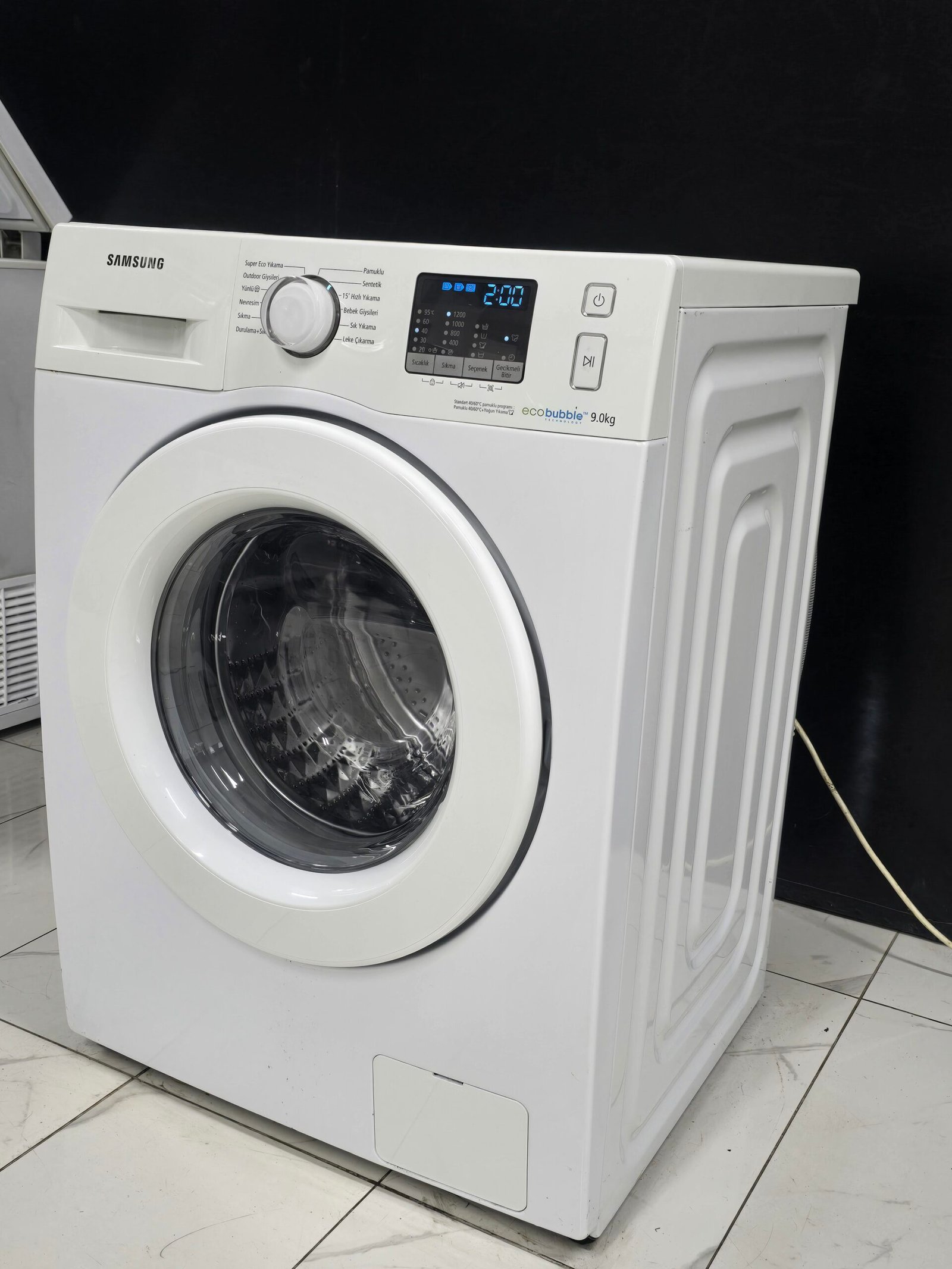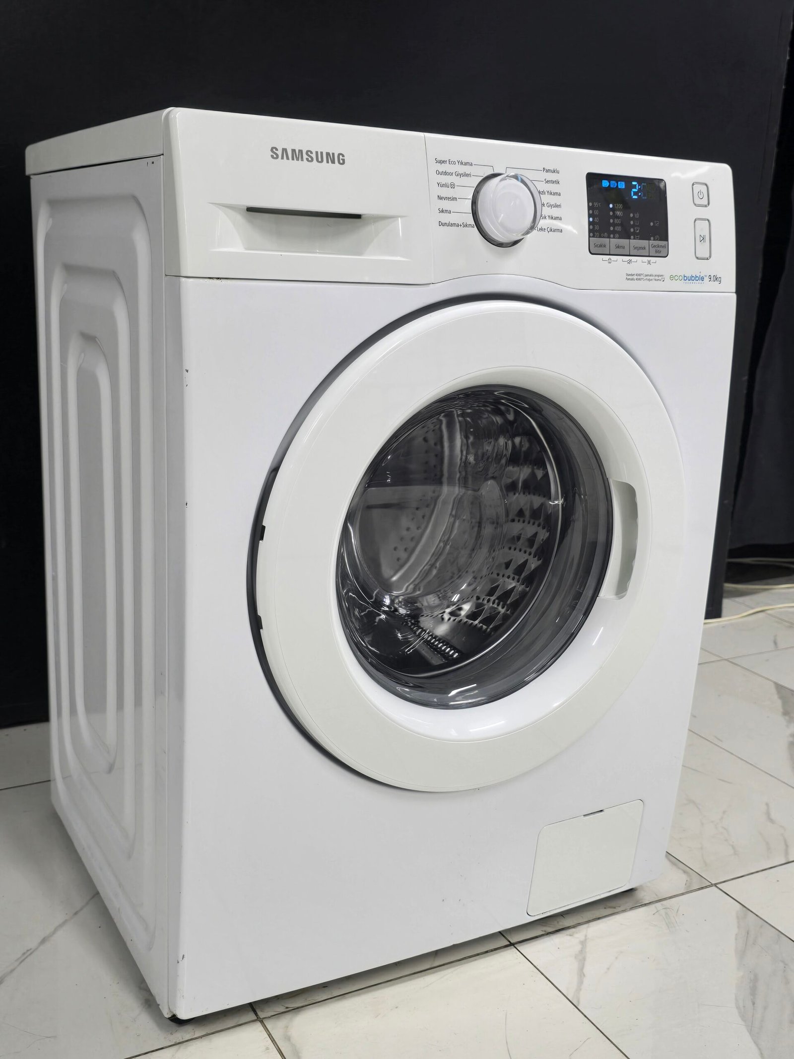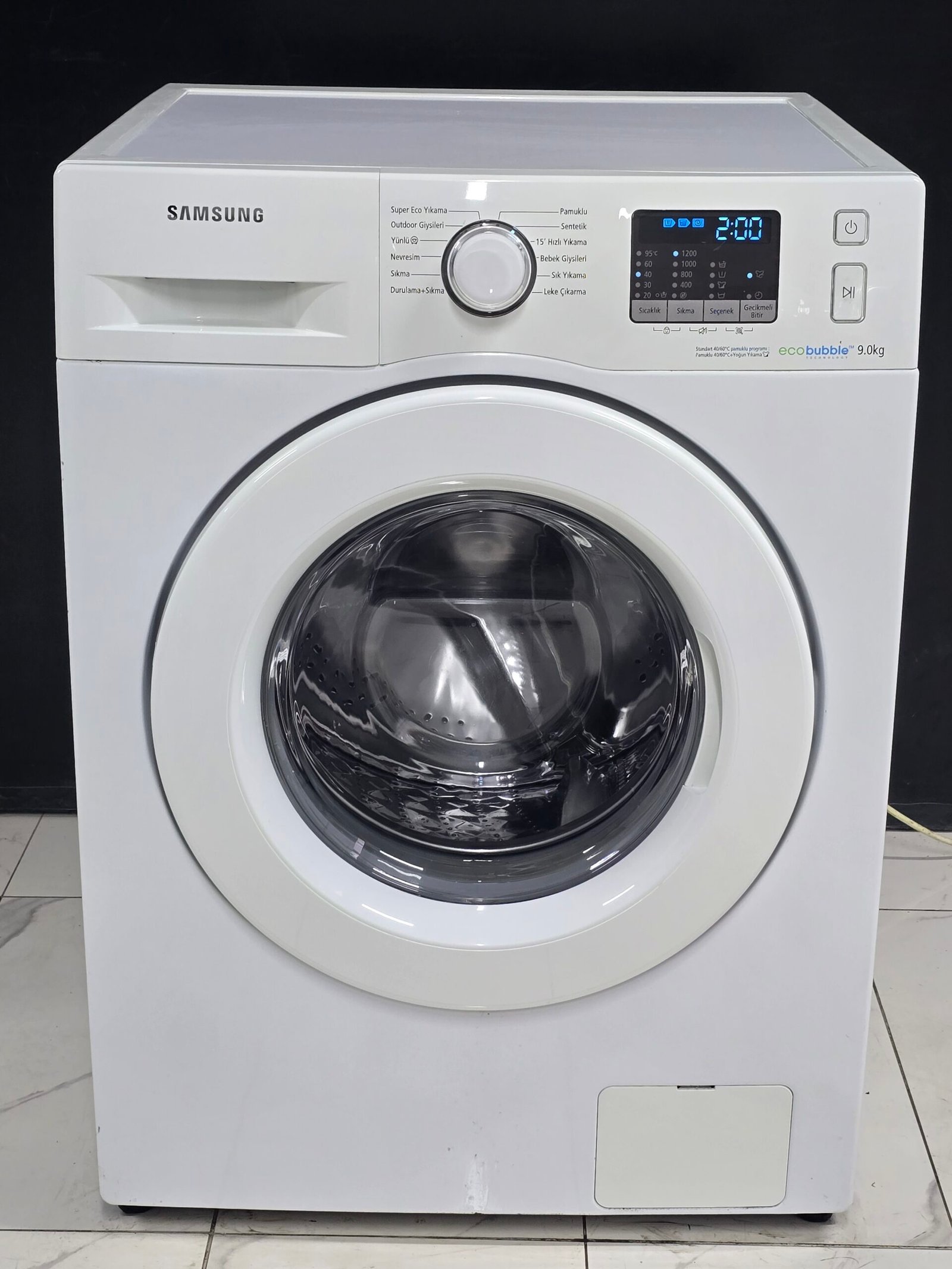 SAMSUNG A++ ECO BUBBLE 9 KG 1200 DEVİR 15 DK KISA PROG, PROGRAMLAMA EKRANLI 11000 TL