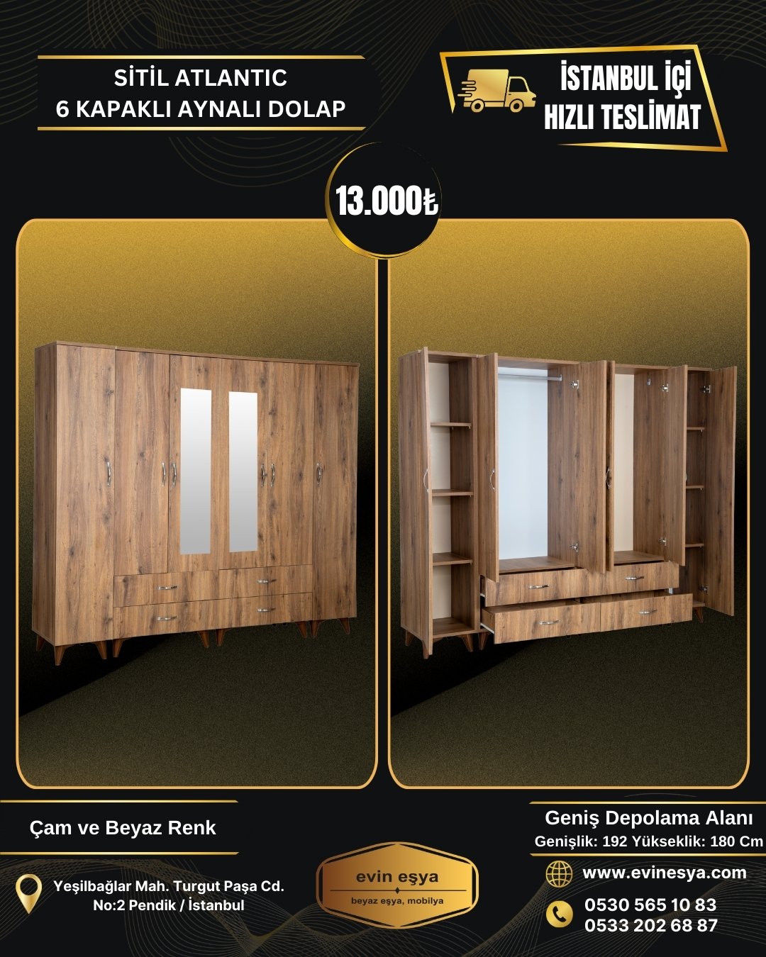 SİTİL ATLANTIC 6 KAPAKLI AYNALI DOLAP 13000 TL (192-180)