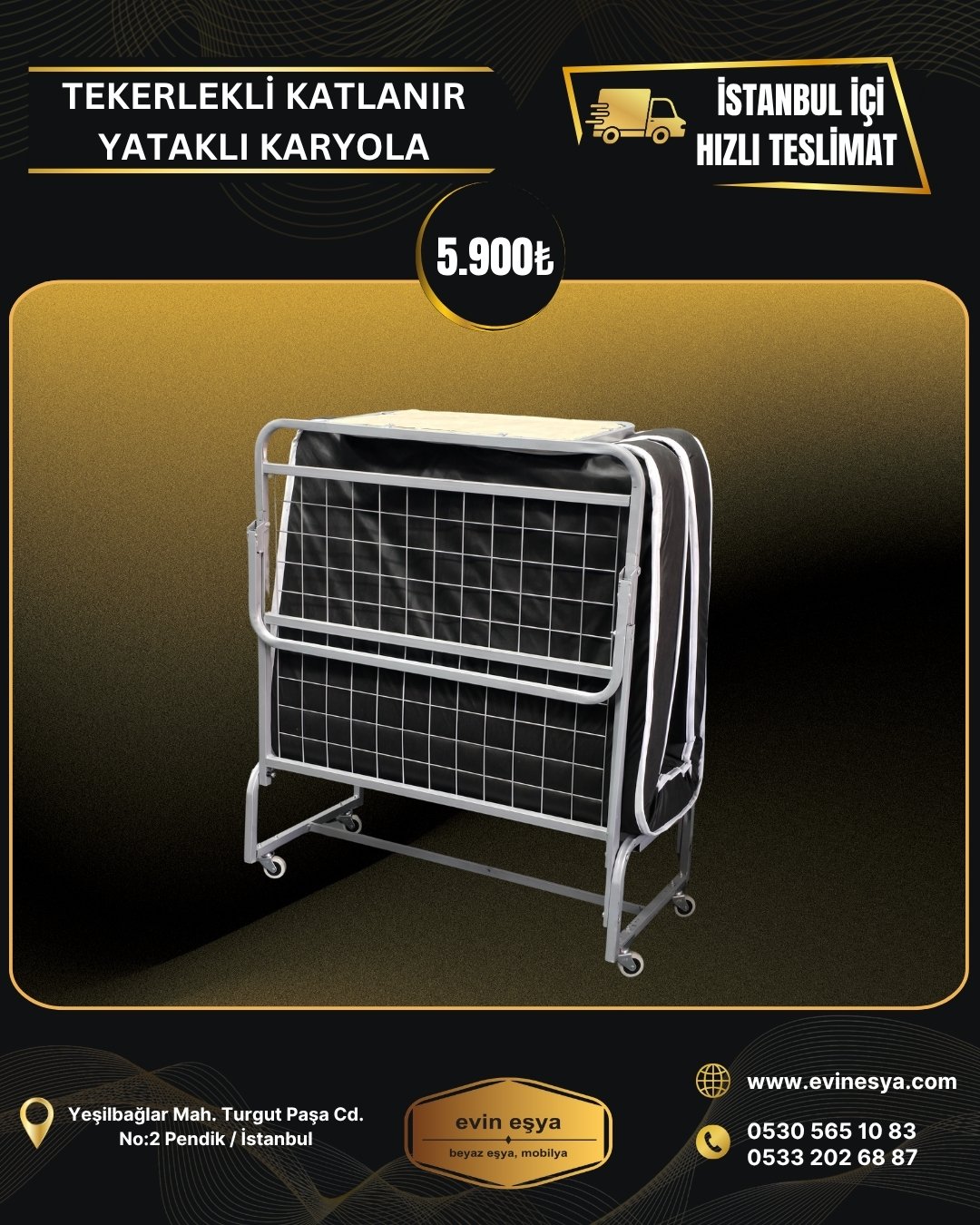 TEKERLEKLİ KATLANIR YATAKLI KARYOLA 5900 TL