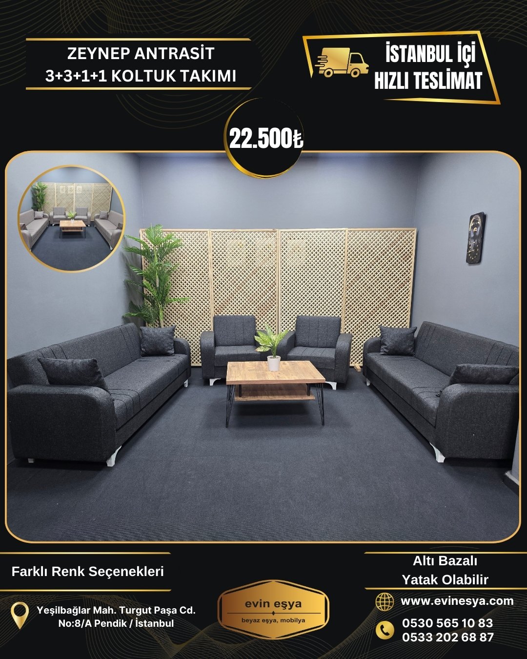 “ZEYNEP ANTRASİT 3+3+1+1 KOLTUK TAKIMI” için yorum yapan ilk kişi siz olun
