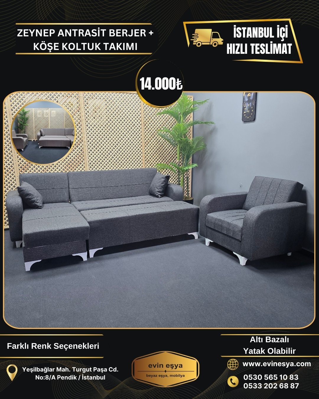 ZEYNEP ANTRASİT KÖŞE KOLTUK+BERJER TAKIMI 14000 TL